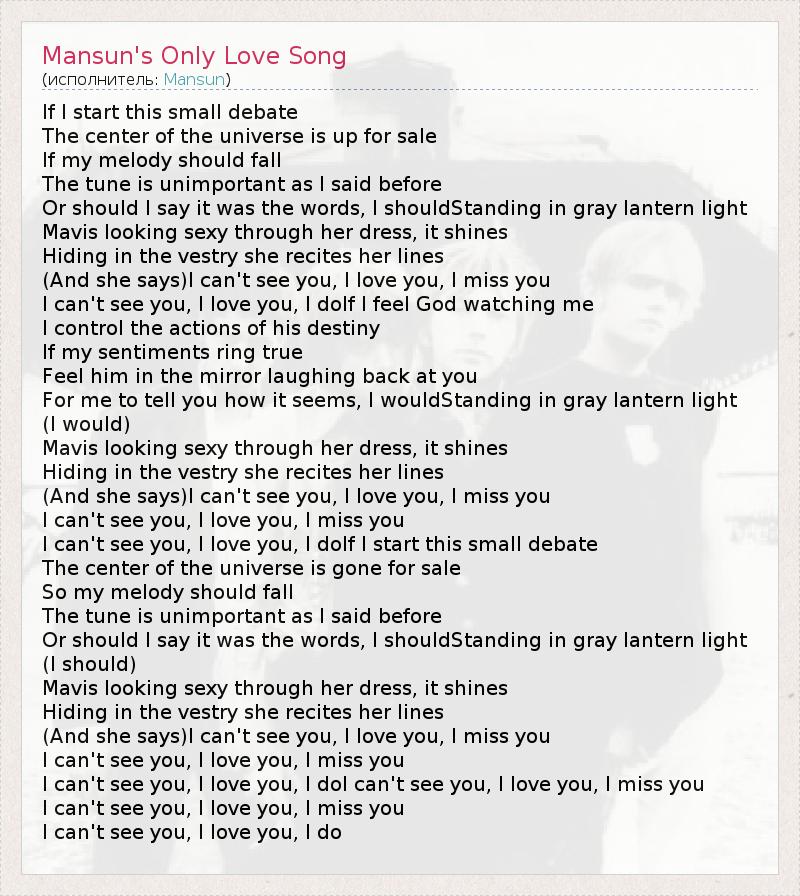А как ты думаешь, о чем песня "Mansun's Only Love Song" ?