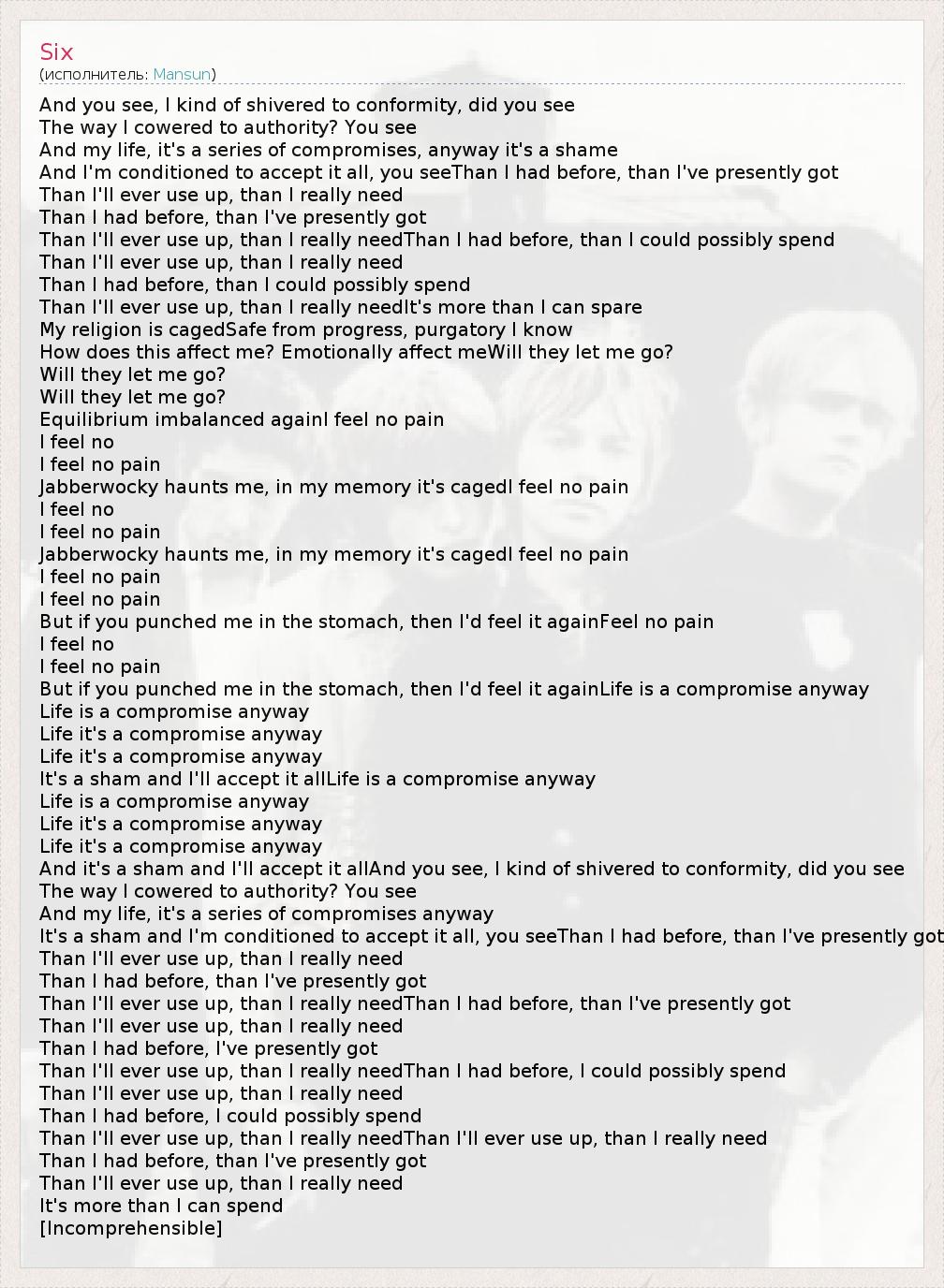 And it's a sham and I'll accept it allAnd you see, I kind of shivered to conformity, did you see