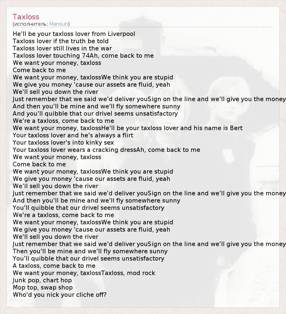 We want your money, taxlossHe'll be your taxloss lover and his name is Bert