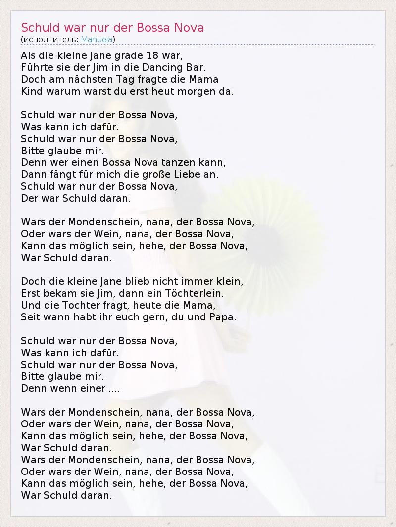 ГлавнаяИсполнителиManuelaSchuld war nur der Bossa Nova