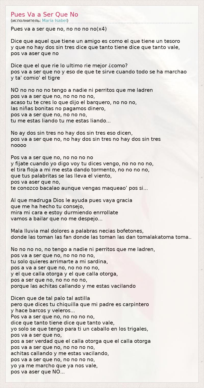 А как ты думаешь, о чем песня "Pues Va a Ser Que No" ?