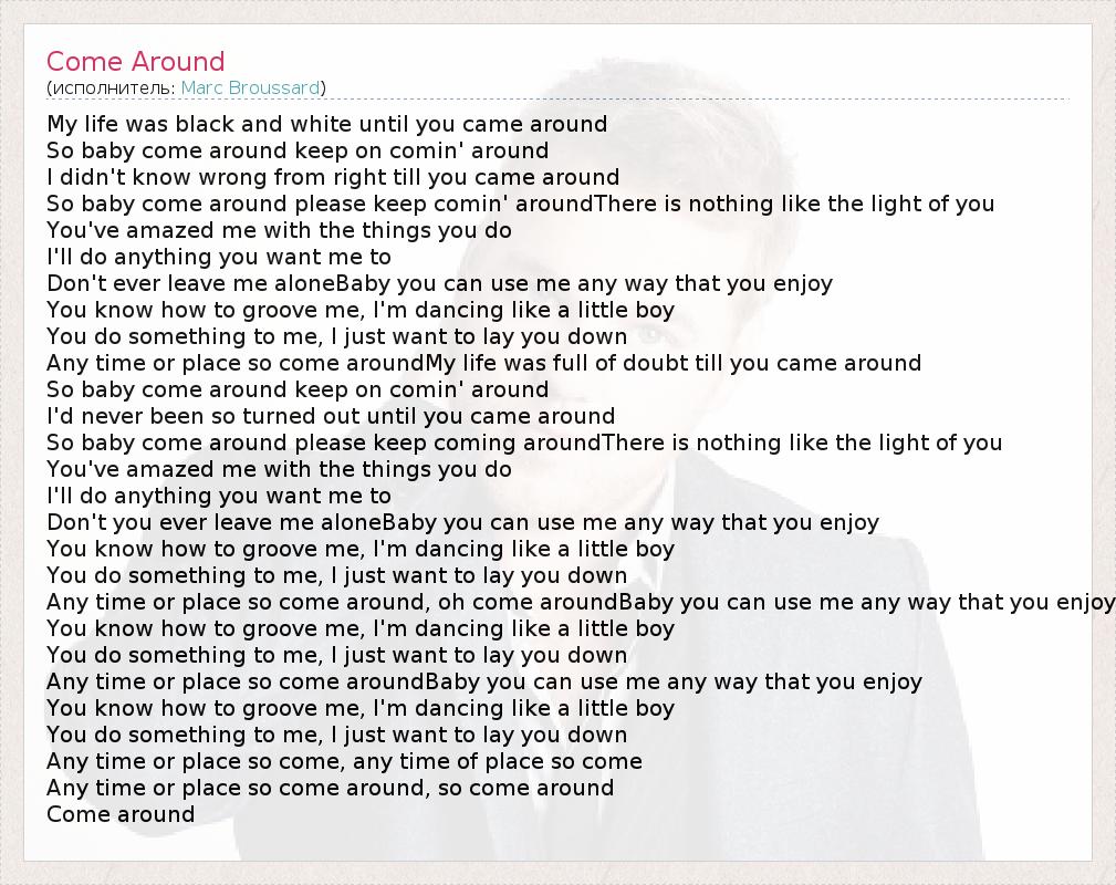 Any time or place so come around, oh come aroundBaby you can use me any way that you enjoy