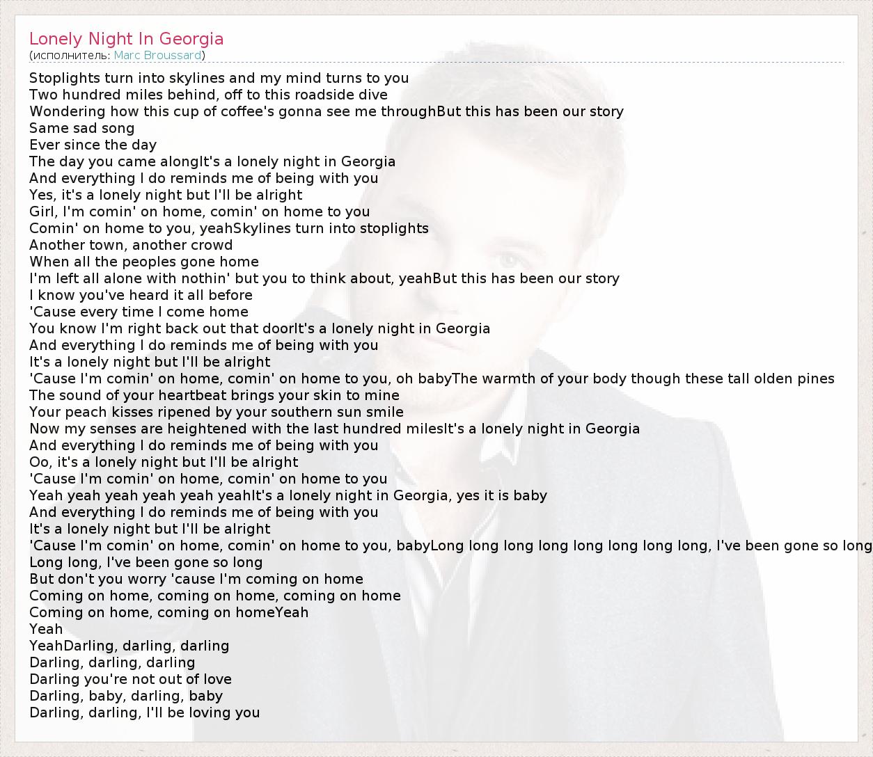 А как ты думаешь, о чем песня "Lonely Night In Georgia" ?