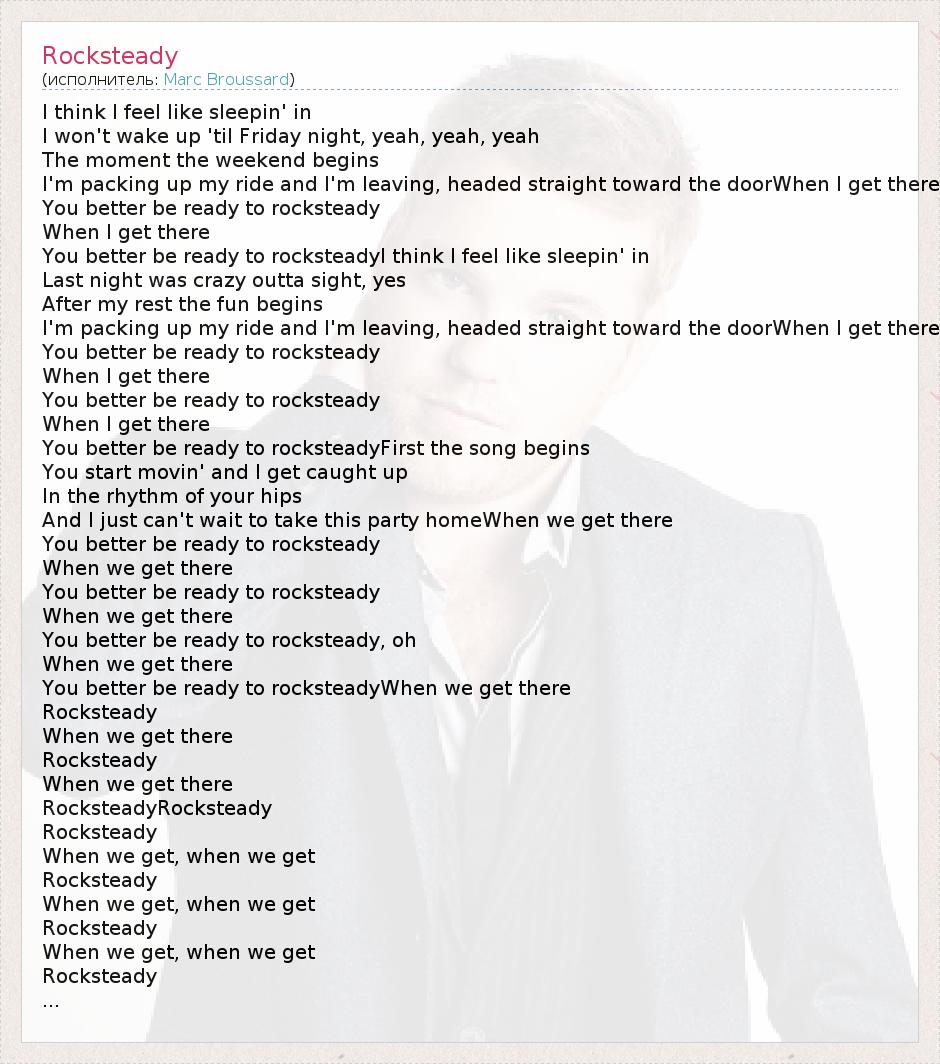 You better be ready to rocksteadyI think I feel like sleepin' in