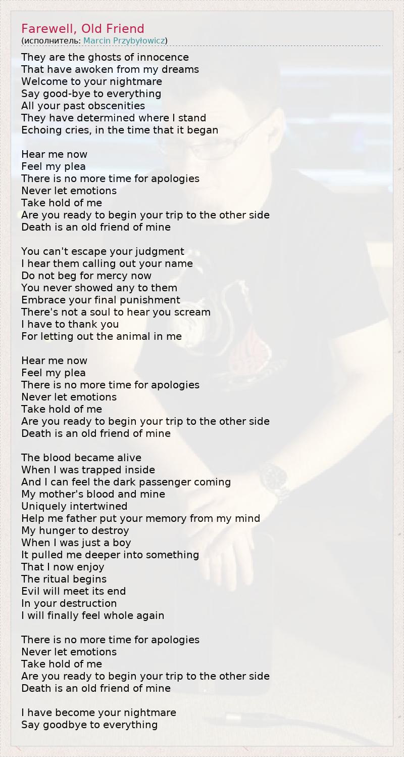 А как ты думаешь, о чем песня "Farewell, Old Friend" ?