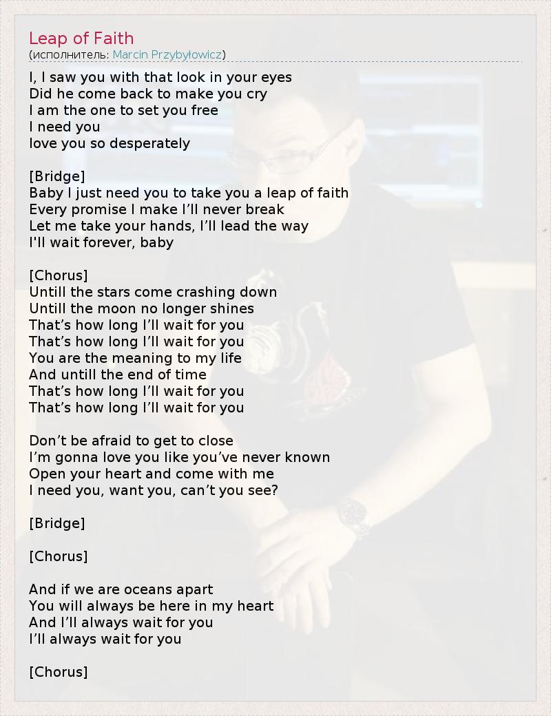 А как ты думаешь, о чем песня "Leap of Faith" ?