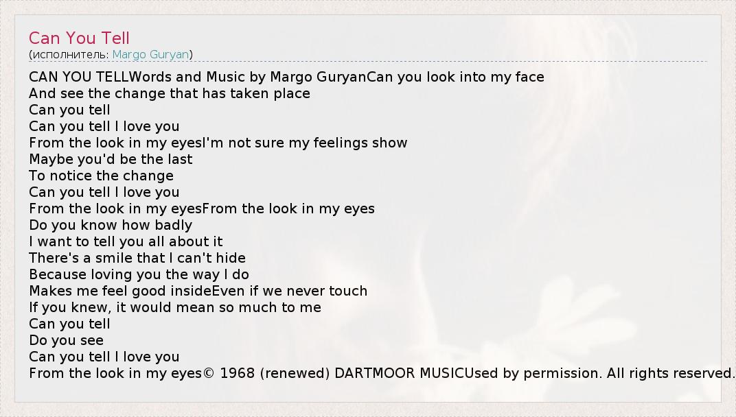 CAN YOU TELLWords and Music by Margo GuryanCan you look into my face