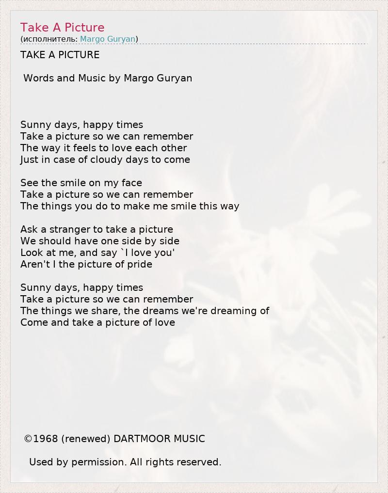 А как ты думаешь, о чем песня "Take A Picture" ?