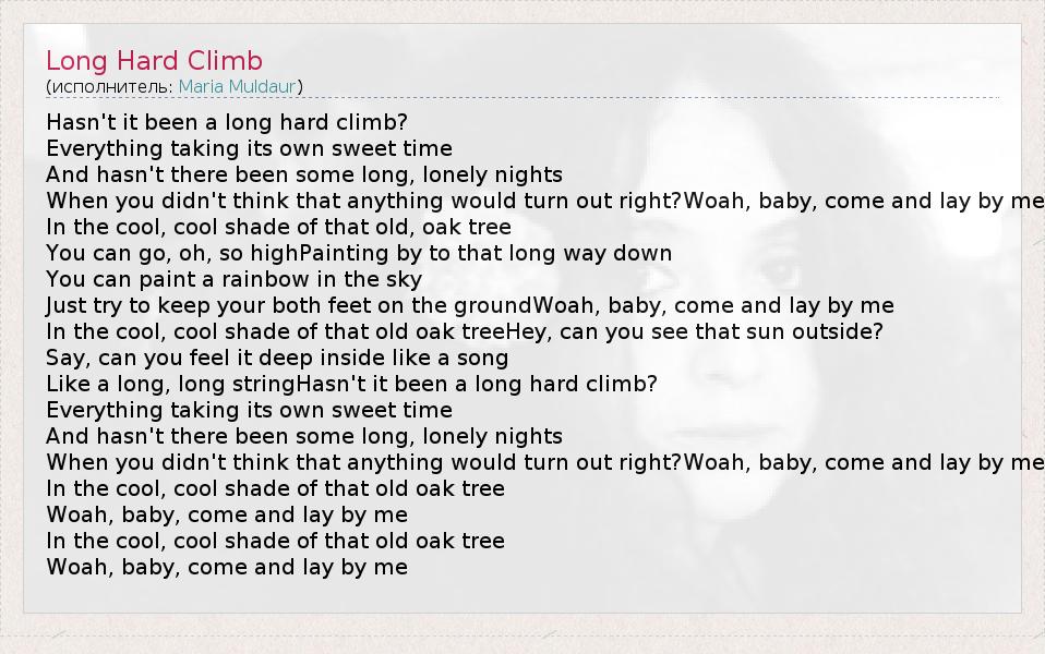 А как ты думаешь, о чем песня "Long Hard Climb" ?