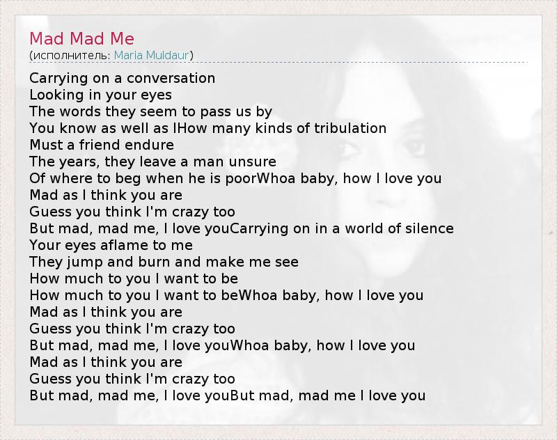 А как ты думаешь, о чем песня "Mad Mad Me" ?