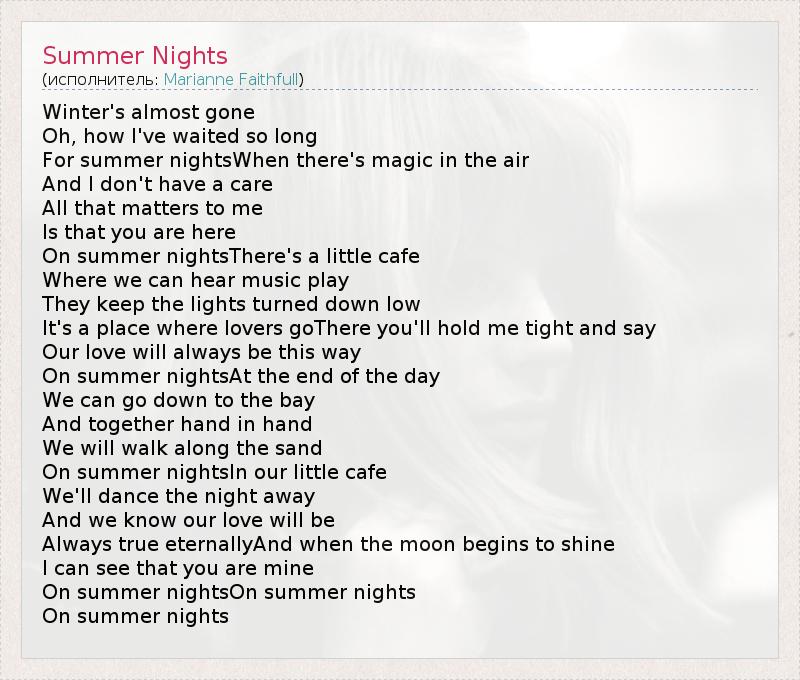 А как ты думаешь, о чем песня "Summer Nights" ?