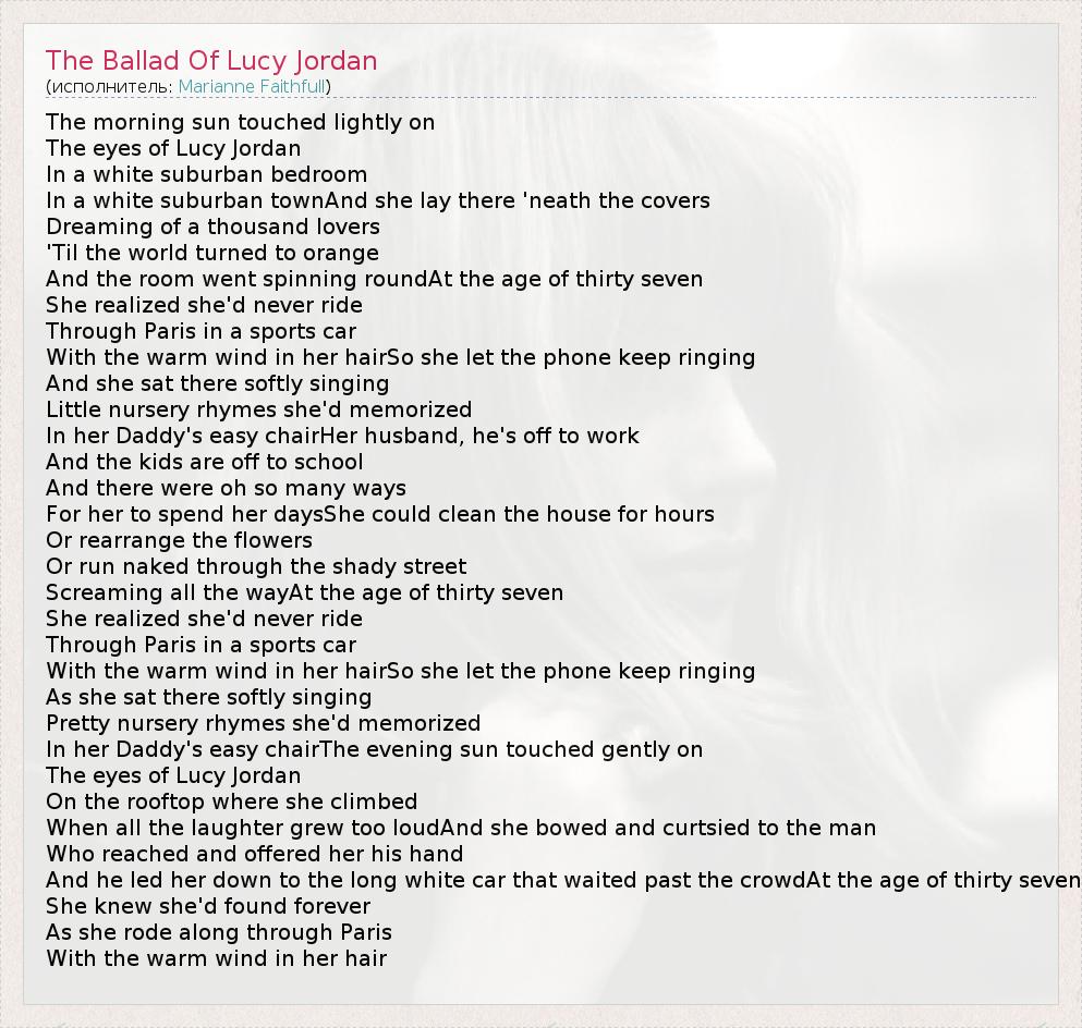 А как ты думаешь, о чем песня "The Ballad Of Lucy Jordan" ?