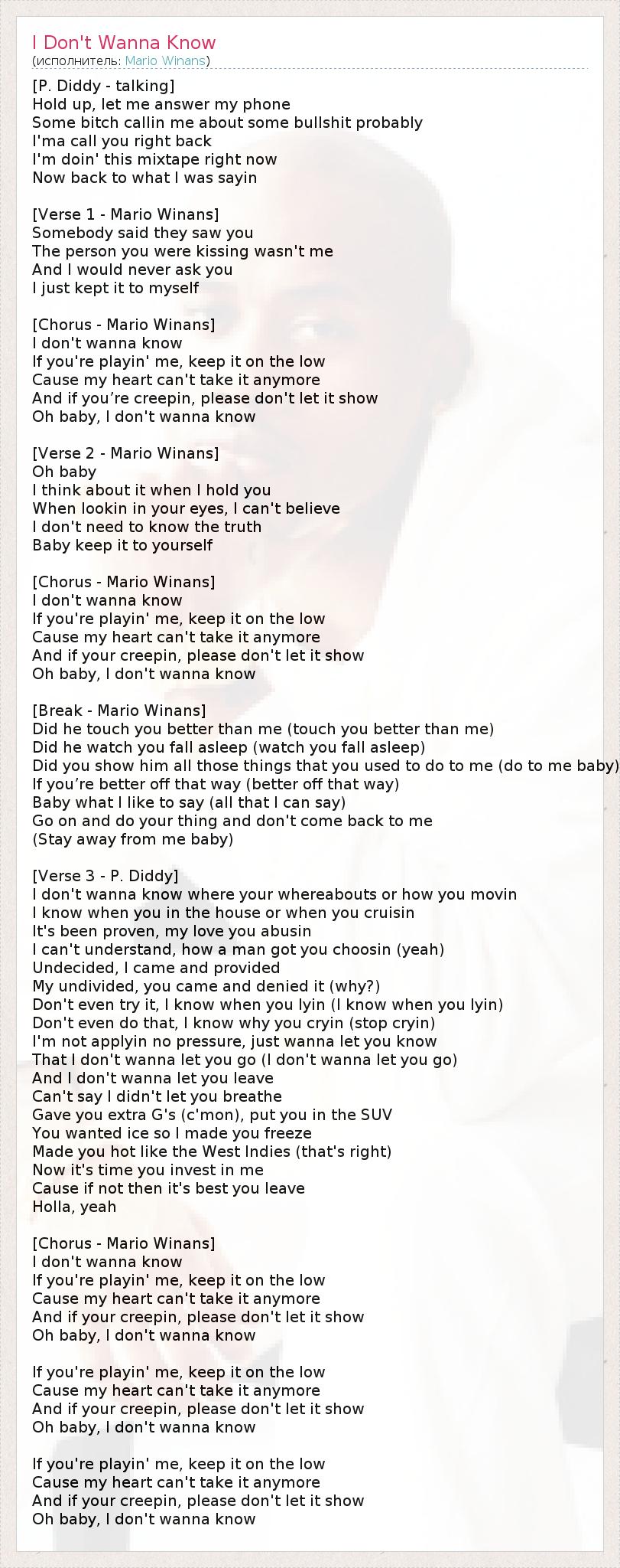 А как ты думаешь, о чем песня "I Don't Wanna Know" ?