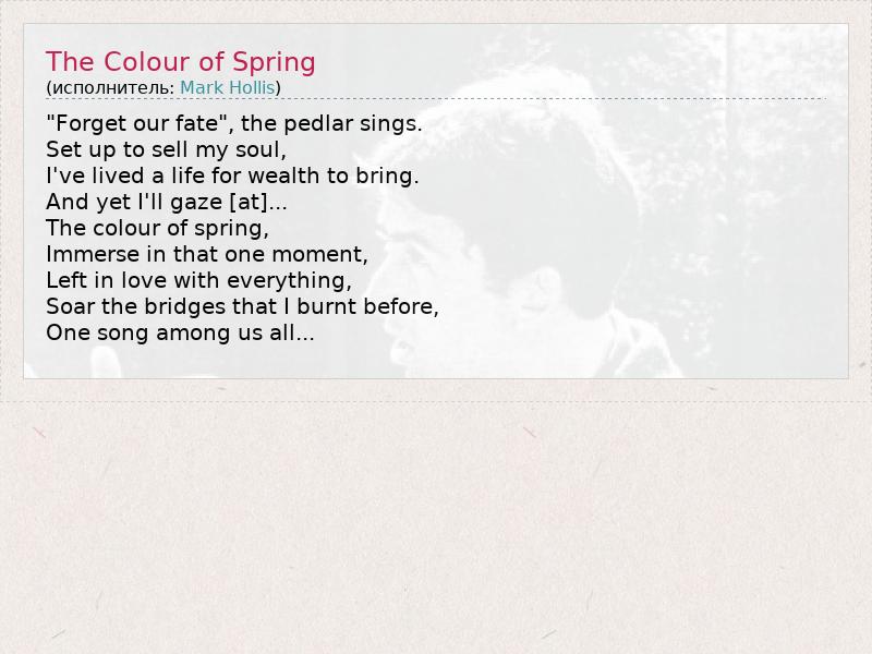 А как ты думаешь, о чем песня "The Colour of Spring" ?