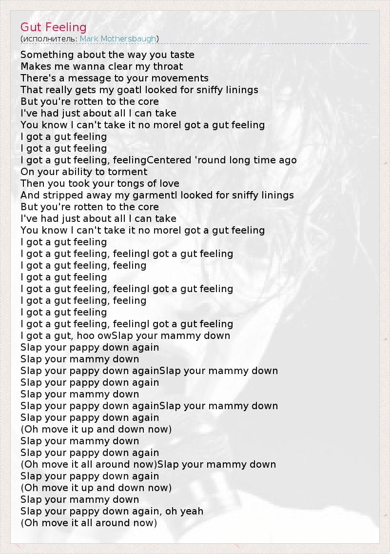 I got a gut feeling, feelingI got a gut feeling