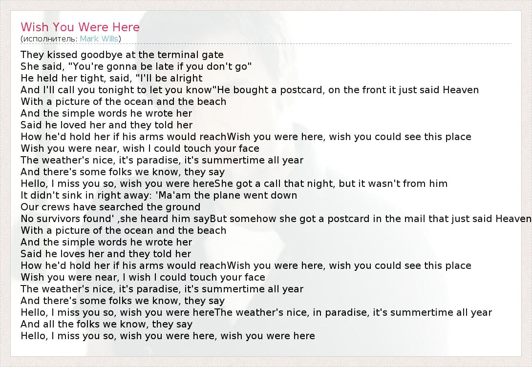 А как ты думаешь, о чем песня "Wish You Were Here" ?