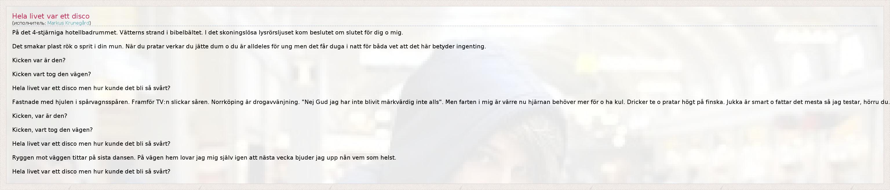 А как ты думаешь, о чем песня "Hela livet var ett disco" ?