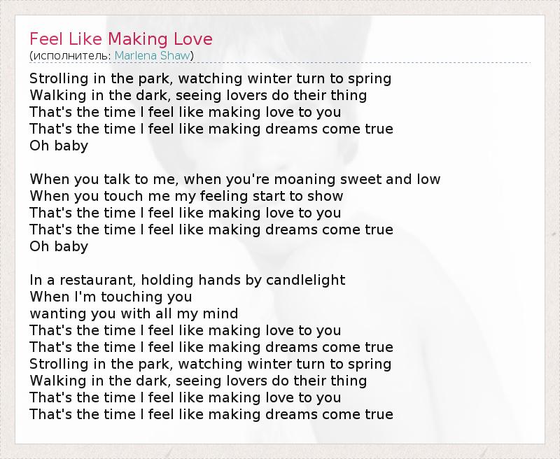 А как ты думаешь, о чем песня "Feel Like Making Love" ?