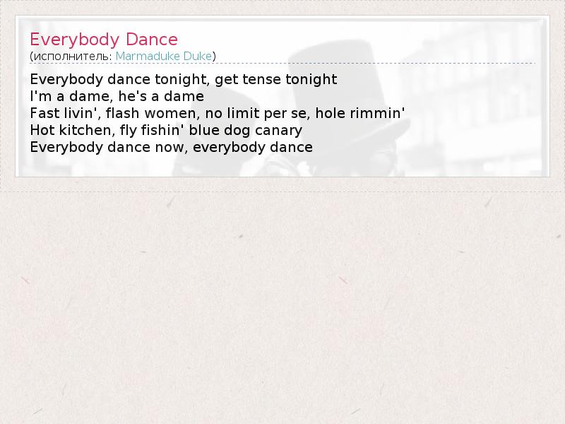 А как ты думаешь, о чем песня "Everybody Dance" ?