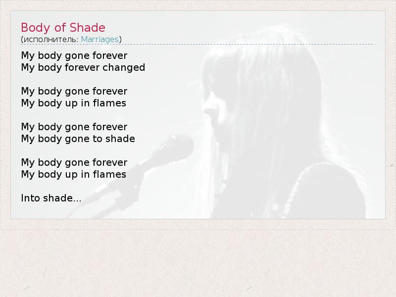 А как ты думаешь, о чем песня "Body of Shade" ?