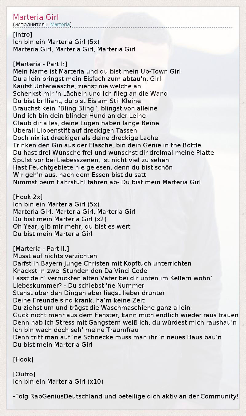 А как ты думаешь, о чем песня "Marteria Girl" ?