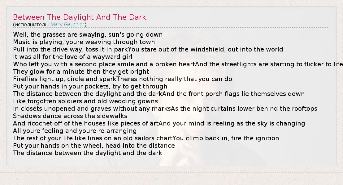 А как ты думаешь, о чем песня "Between The Daylight And The Dark" ?