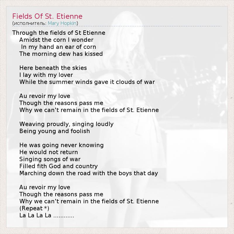 А как ты думаешь, о чем песня "Fields Of St. Etienne" ?