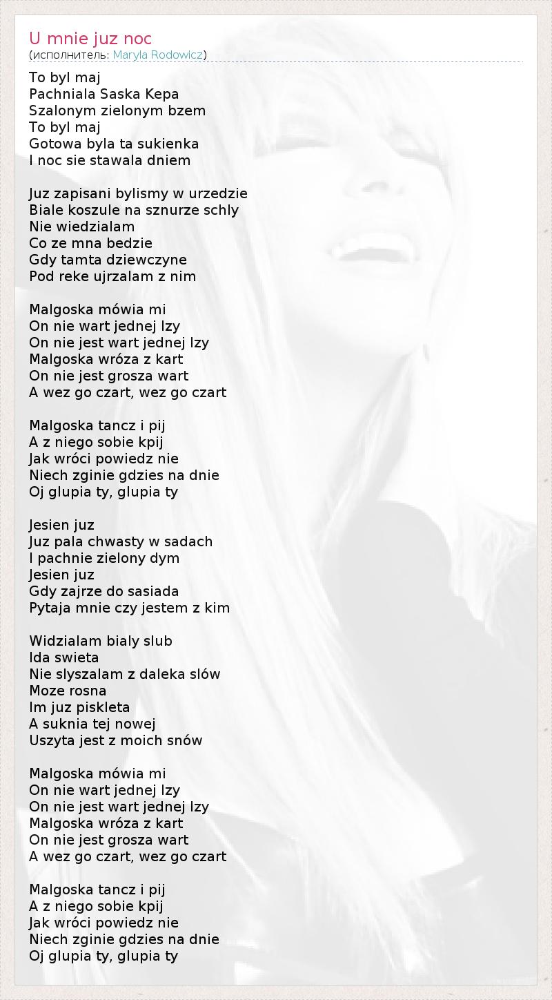 А как ты думаешь, о чем песня "U mnie juz noc" ?