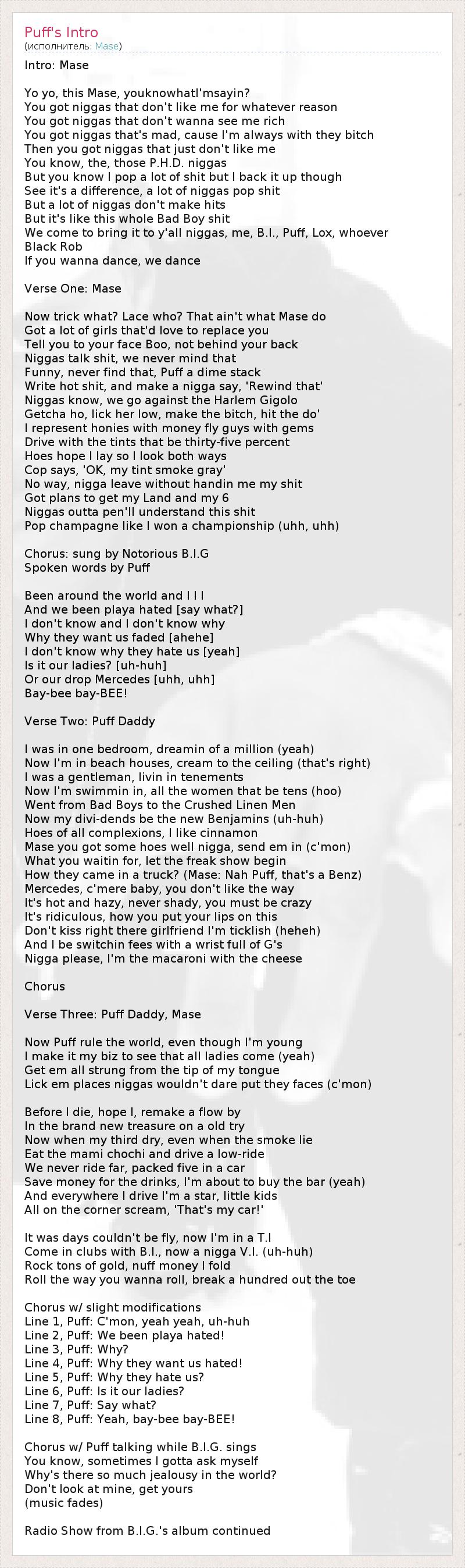 Куплет 3: Puff Daddy, Mase