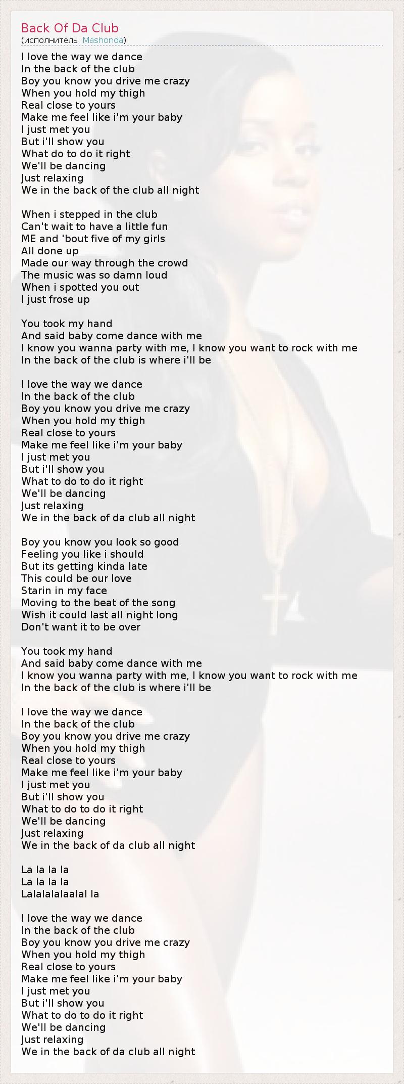 А как ты думаешь, о чем песня "Back Of Da Club" ?