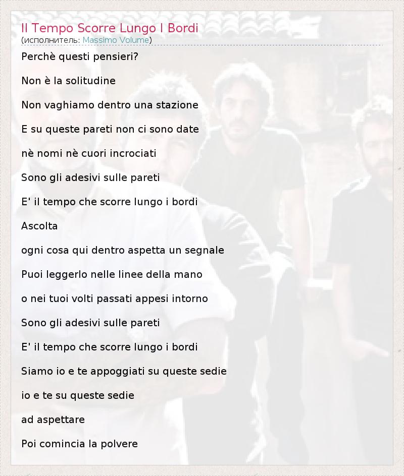 ГлавнаяИсполнителиMassimo VolumeIl Tempo Scorre Lungo I Bordi