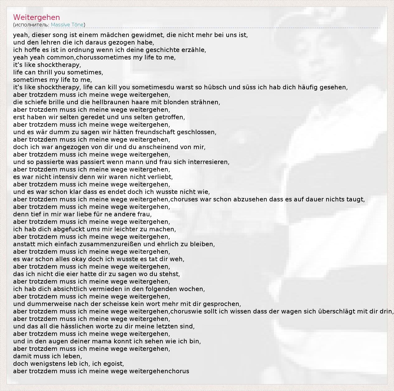 А как ты думаешь, о чем песня "Weitergehen" ?