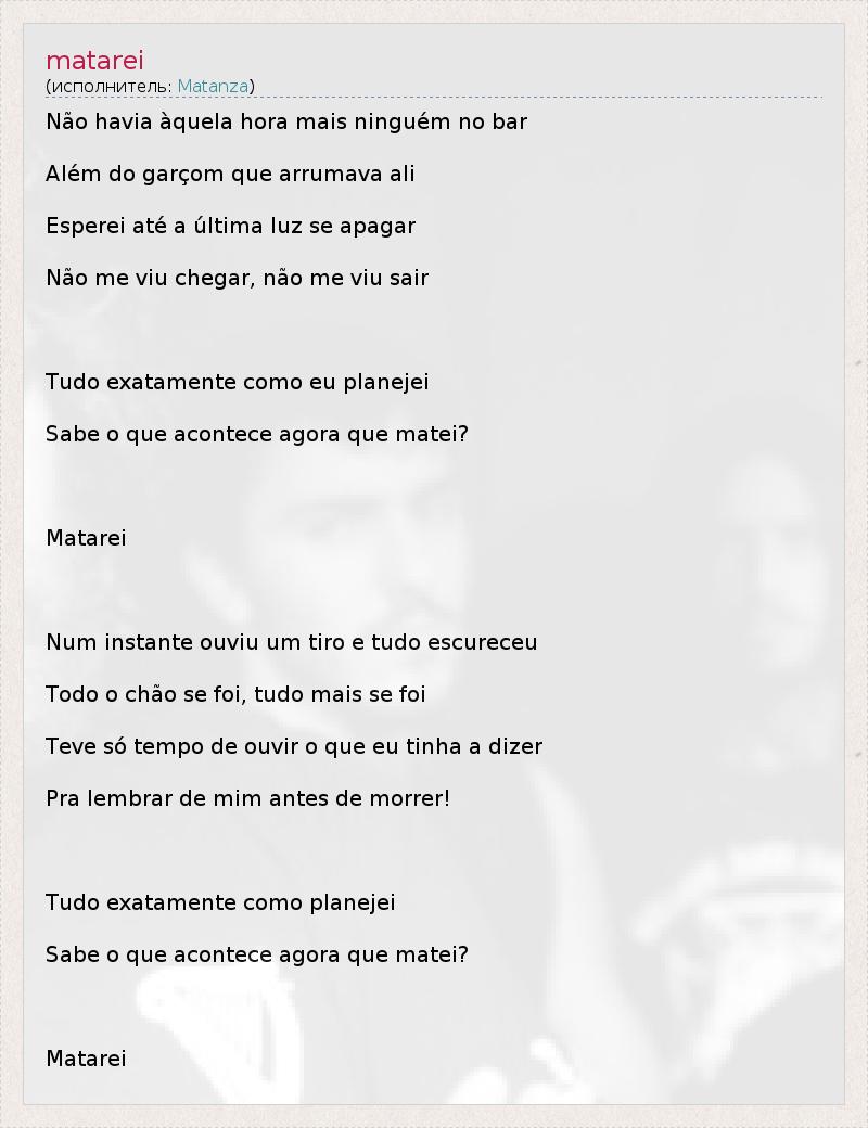 Это интересно:Matanza is a Brazilian rock band from Rio de Janeiro. Their music is a blend of hardcore punk, country and heavy metal, thus forming the genre that the media titled countrycore.Matanza was conceived in 1996 by Jimmy London and Donida, given the idea to explore the simple and straightforward melodies of the early career of the American singer Johnny Cash, adapted to the tempo of a drum was heard as that of Scottish band The Exploited. With drummer and bassist Nervous and Diba, they recorded a demo in 1998 called Terror em Dashville.In 1999, a new recording would attract the attention of producer Rafael Ramos, and lead the Matanza to sign with the now defunct Music for the April release... продолжение