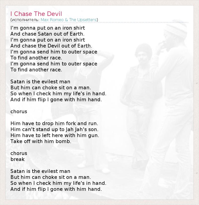 А как ты думаешь, о чем песня "I Chase The Devil" ?