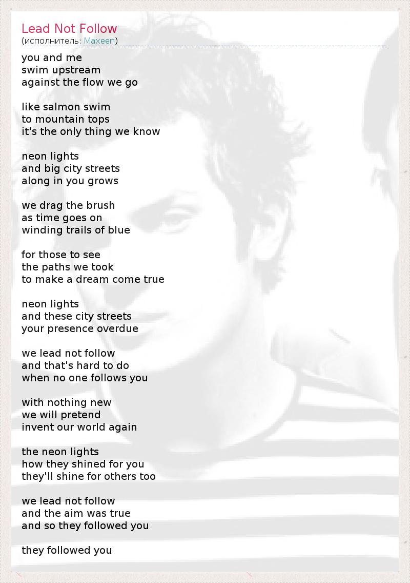 А как ты думаешь, о чем песня "Lead Not Follow" ?