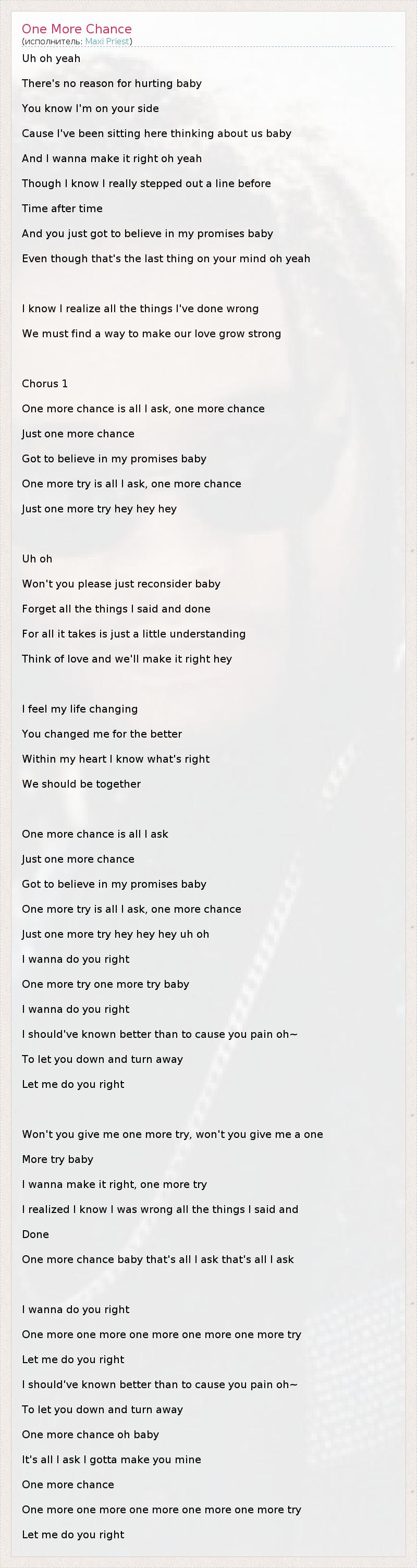 One more chance baby that's all I ask that's all I ask