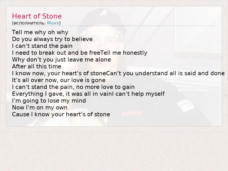 А как ты думаешь, о чем песня "Heart of Stone" ?
