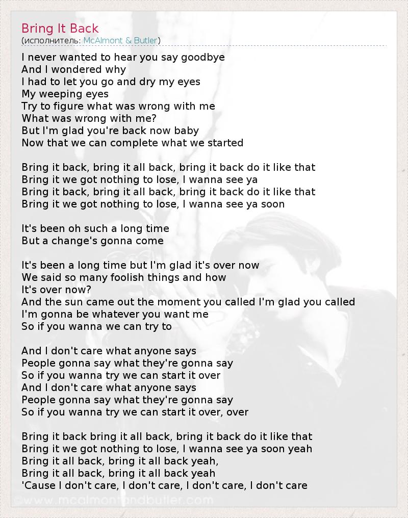 А как ты думаешь, о чем песня "Bring It Back" ?