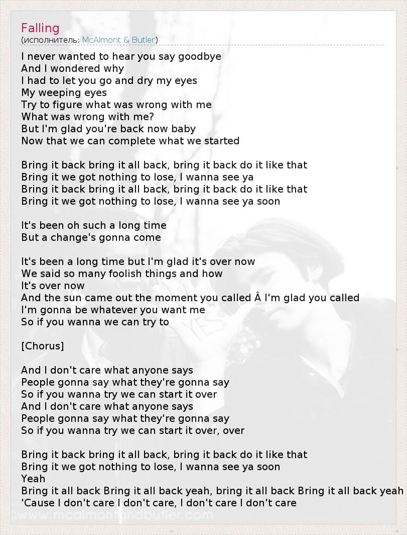 Bring it all back Bring it all back yeah, bring it all back Bring it all back yeah