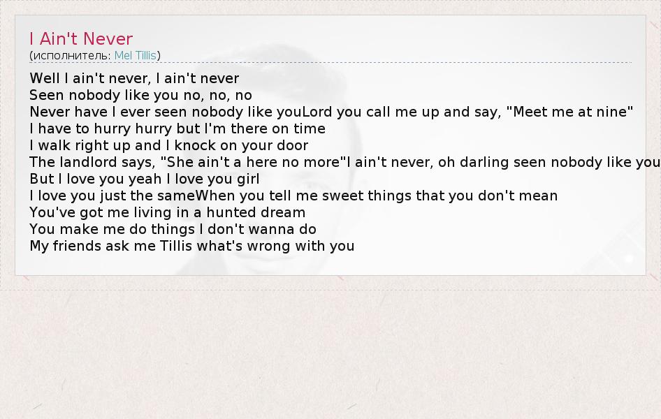 А как ты думаешь, о чем песня "I Ain't Never" ?