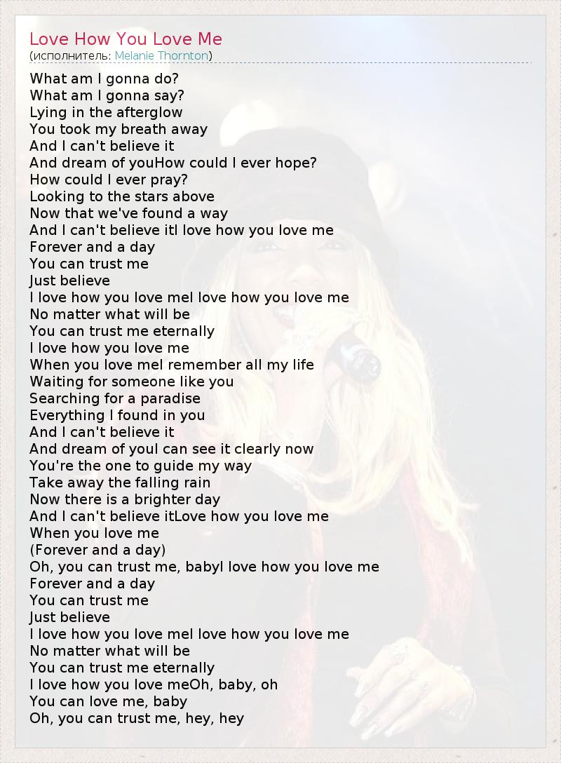 А как ты думаешь, о чем песня "Love How You Love Me" ?