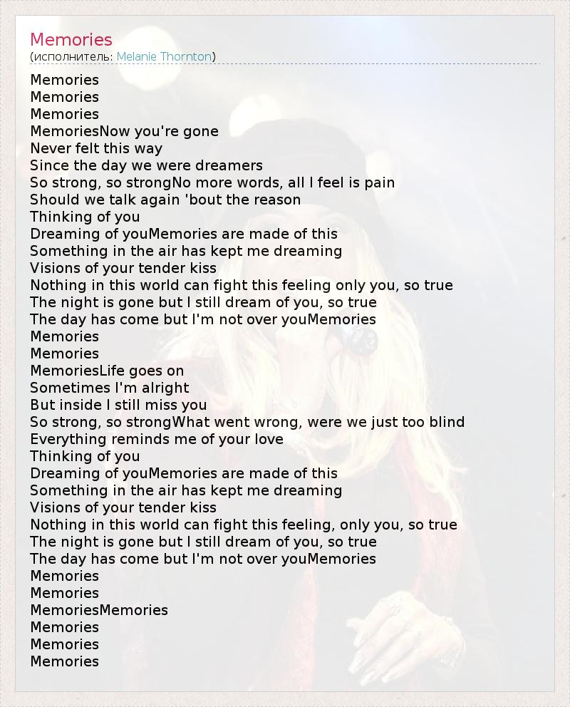 А как ты думаешь, о чем песня "Memories" ?
