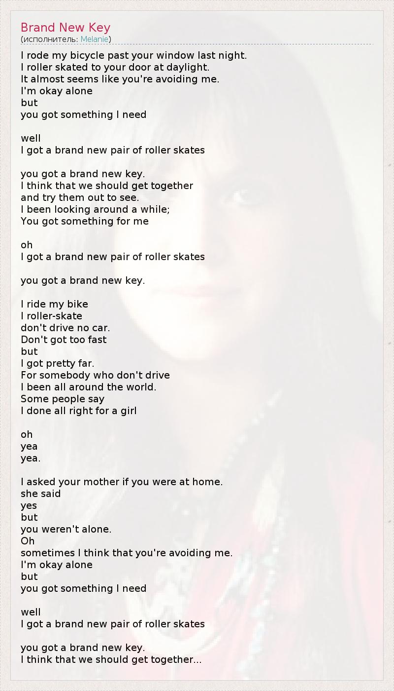 А как ты думаешь, о чем песня "Brand New Key" ?