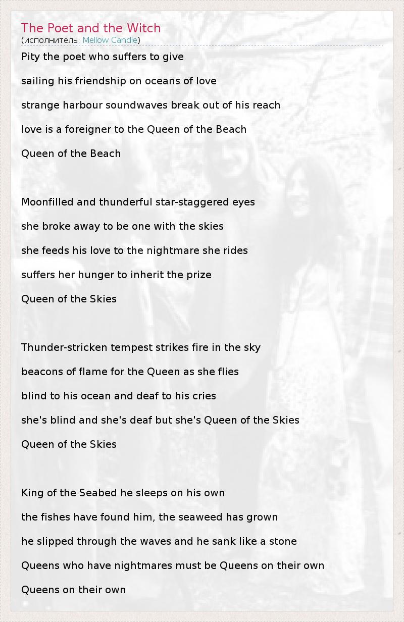 А как ты думаешь, о чем песня "The Poet and the Witch" ?