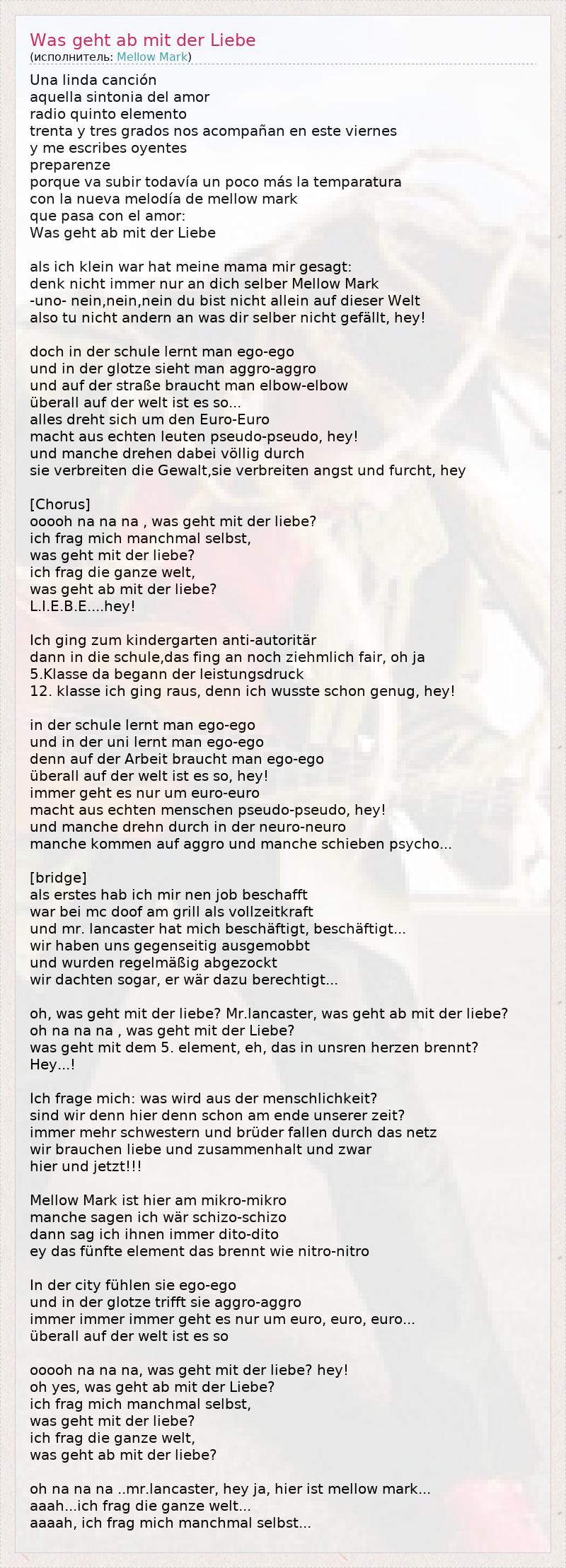 ГлавнаяИсполнителиMellow MarkWas geht ab mit der Liebe