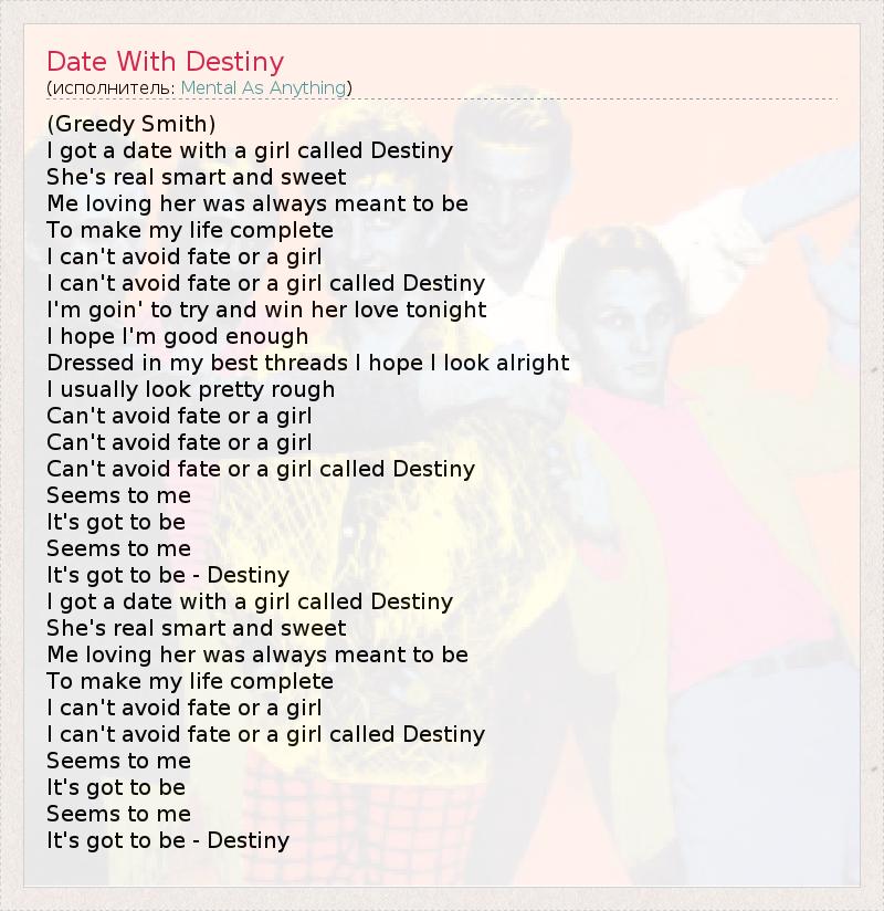 А как ты думаешь, о чем песня "Date With Destiny" ?