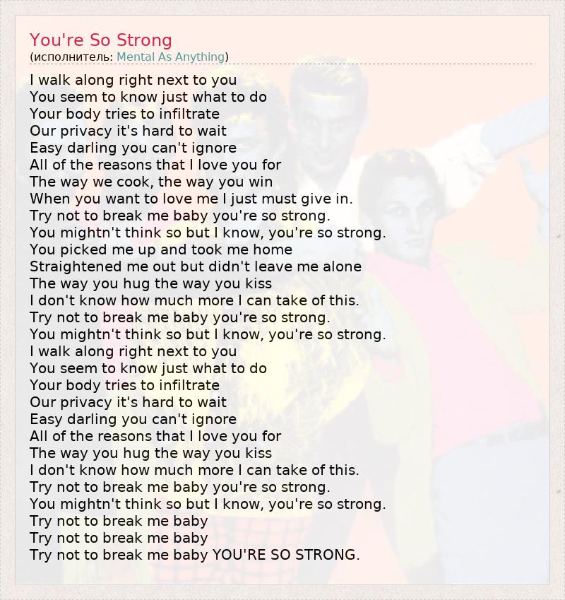 А как ты думаешь, о чем песня "You're So Strong" ?