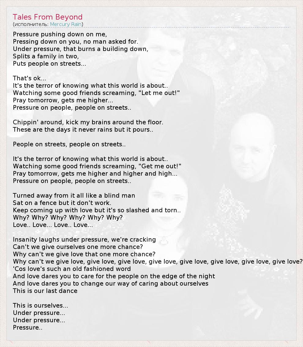 Pressing down on you, no man asked for.