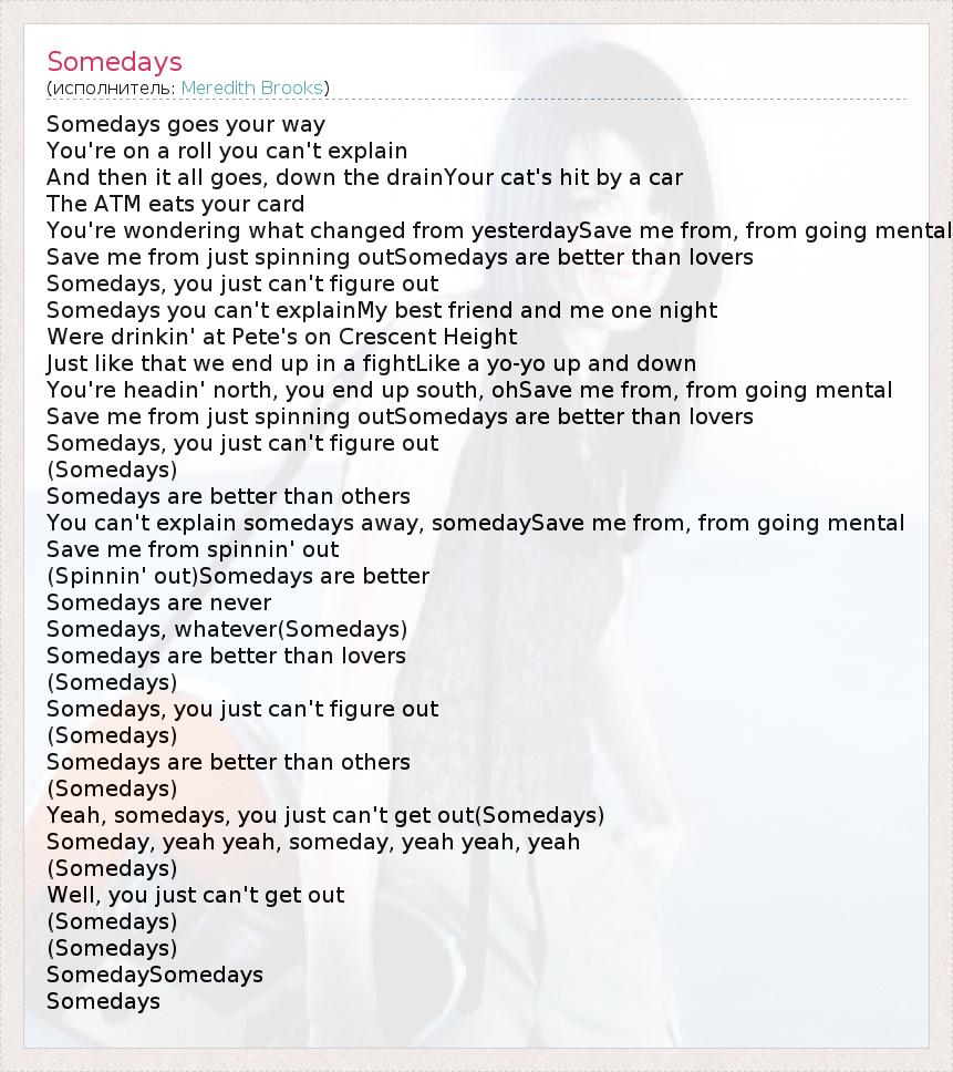 А как ты думаешь, о чем песня "Somedays" ?