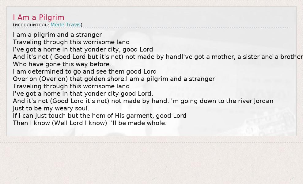 А как ты думаешь, о чем песня "I Am a Pilgrim" ?